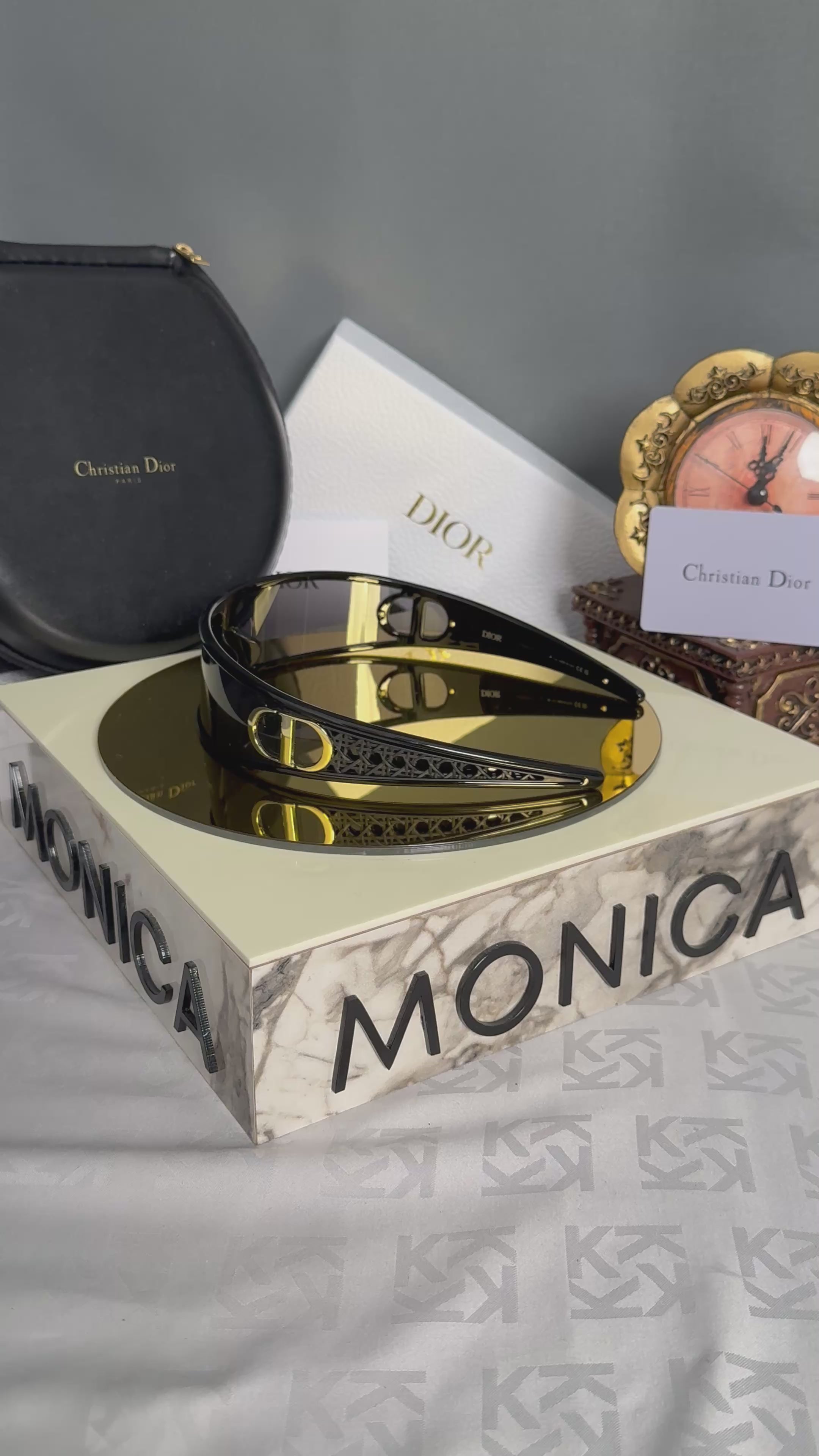 Dioclub UZ güneş gözlüğü, Dioclub’un ikonik tasarım anlayışını modern bir yorumla sunuyor. Siyah enjeksiyon kalıplı naylon çerçevesi ve heykelsi yapısıyla dikkat çeken bu model, altın kaplamalı metal CD logosu ve Cannage motifli sap detaylarıyla lüksü yansıtıyor. lensleri %100 UVA/UVB koruması sağlayarak gözlerinizi zararlı ışınlardan korurken, maske tarzı tasarımıyla stilinize futuristik bir dokunuş katıyor. Kafa bandı gibi takılabilen bu gözlük, avant-garde bir görünüm arayanlar için ideal bir seçenek.